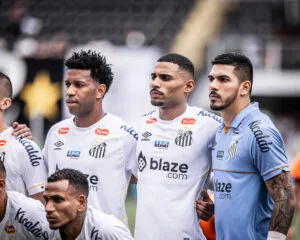 João Paulo, Gil e Joaquim compõem e a defesa do Santos (Crédito: Raul Baretta/Santos FC)