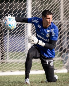 Gabriel Brazão está pendurado no Santos (Crédito: Raul Baretta/SantosFC)
