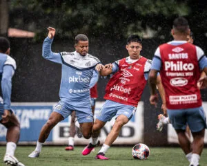 Kevyson e Miguelito vão jogar pela base na segunda-feira (Crédito: Raul Baretta/ Santos FC)
