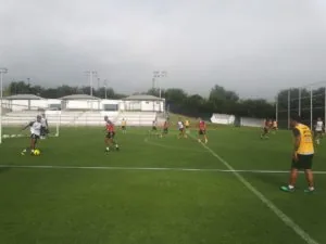 Santistas treinaram nesta segunda no CT do Monterrey antes de viajar para Querétaro (Crédito: Vinicios Oliveira/Santos FC)