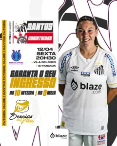 O Santos voltou atrás na decisão e vai cobrar entrada no jogo das Sereias da Vila diante o Corinthians nesta sexta-feira (12), às 20h30min, na Vila Belmiro, pela quinta rodada do Brasileirão Feminino. A venda dos tickets inicia nesta terça-feira (09), às 16 horas, para sócios no site Sócio Rei e público em geral no site Futebol Card. Valor de R$ 10 (R$ 5 a meia-entrada).