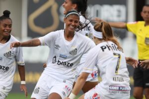 No minuto seguinte, o Santos FC enfim abriu o placar com gol da maior artilheira da história, Ketlen, que balançou as redes pela 178ª vez com o Manto Sagrado. Brena arriscou de longe e fez a bola explodir no travessão. Na sobra, a camisa 7 escorou de cabeça para o fundo das redes.