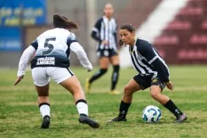 Em seguida, Evelin Bonifácio enfiou belo passe para Isa Viana, que avançava com liberdade pelo ataque. Ela tentou finalização de fora da área mas, bem posicionada, a goleira encaixou a bola.