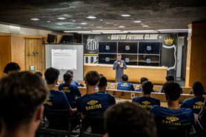 O Santos realizou uma palestra sobre conduta nas redes sociais e com a empresa à categoria Sub-17 masculina. A ação foi promovida pelo Departamento de Comunicação, em parceria com o Departamento Humano, na sala de imprensa da Vila Viva Sorte, nesta quarta-feira (04).