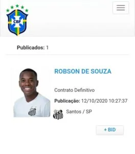 Robinho foi registrado no BID da CBF (Crédito: Reprodução)