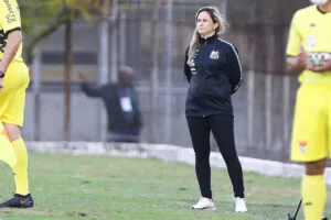 Tatiele Silveira no primeiro clássico no comando das Sereias (Crédito: Pedro Ernesto Guerra Azevedo/Santos FC)