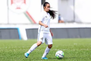 Luana, de apenas 17 anos, foi uma das destaques das Sereias diante da Ponte Preta (Crédito: Pedro Ernesto Guerra Azevedo/SantosFC)