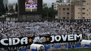 Desde o início do ano, a Torcida Jovem manteve sua faixa tradicional de ponta-cabeça como forma de protesto pelo rebaixamento inédito em 2023. Durante o jogo deste domingo (17), no minuto 10 do primeiro tempo, os torcedores desviraram a faixa. Na mesma ocasião, o jogo foi interrompido para uma homenagem ao Rei Pelé, com uma camisa 10 entrando em campo. Vale lembrar que o número não foi utilizado pelo Santos durante a competição em tributo ao ídolo.