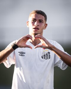 Ano passado, assinou o primeiro contrato profissional com o Peixe e tem vínculo até março de 2027.