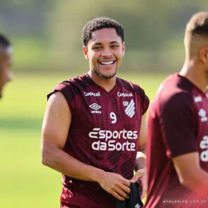 A partida deste domingo diante do Santos será a última do atacante Vitor Roque com a camisa do Athletico-PR na Ligga Arena, casa da equipe paranaense. O confronto começa às 18h30min e pode deixar o Peixe já livre de risco de rebaixamento para a Série B do Campeonato Brasileiro ou em situação delicada para a última rodada do Brasileirão.